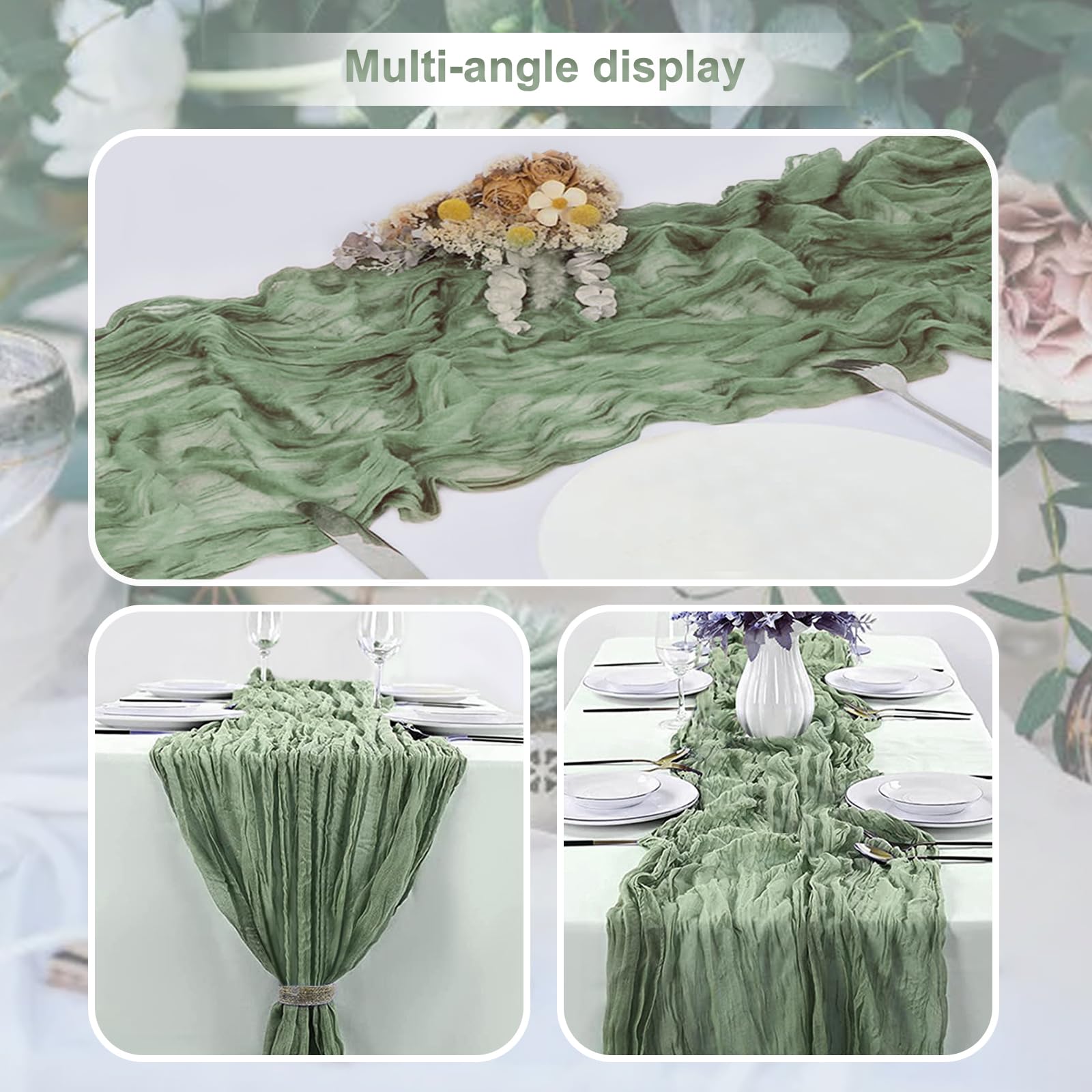 10 Pack Sage Green Cheesecloth Table Runner 35x120 Inch 10Ft Rustic Gauze Cheese Cloth Table Runner Sheer Cheesecloth Table Runners for Wedding Party Bridal Shower Decoration