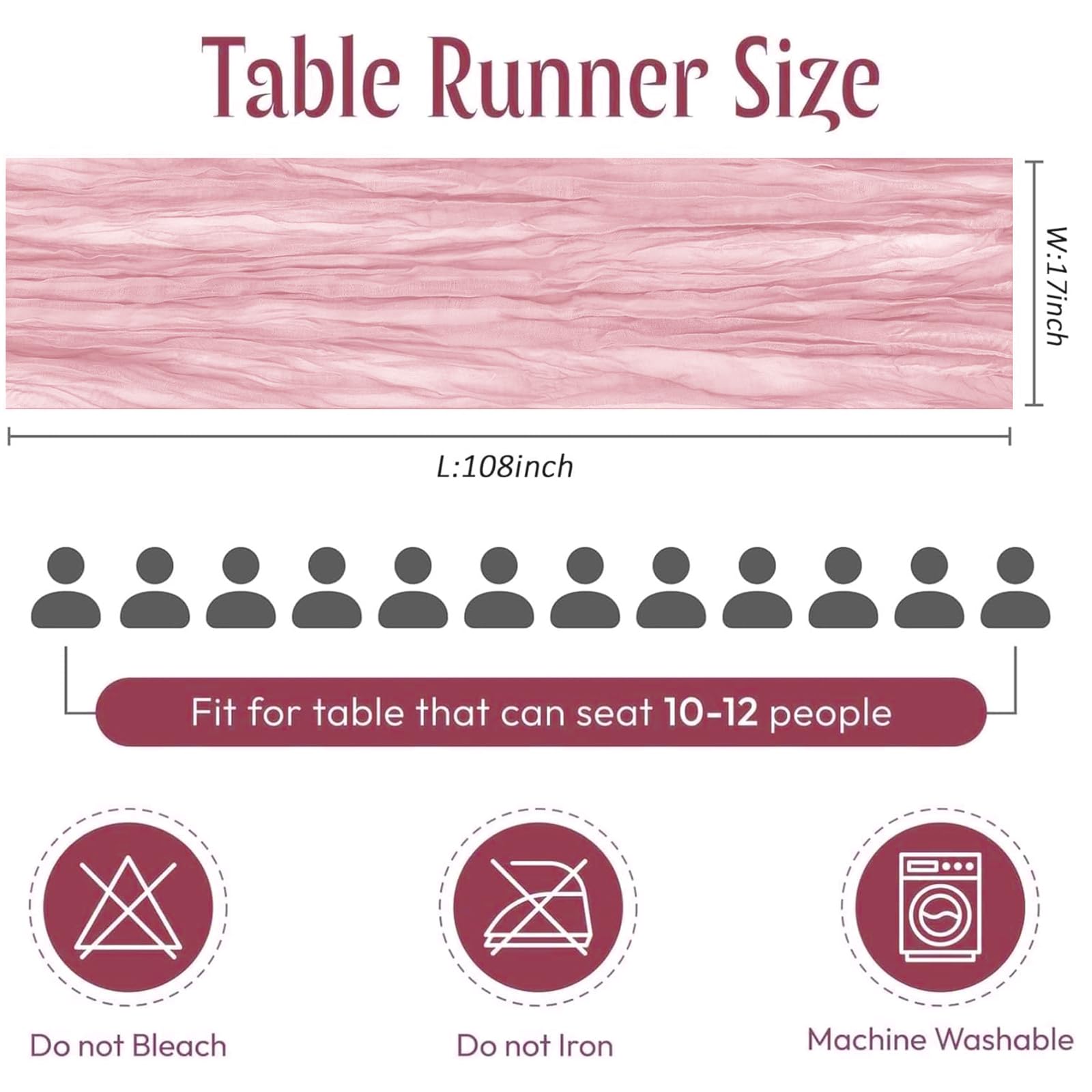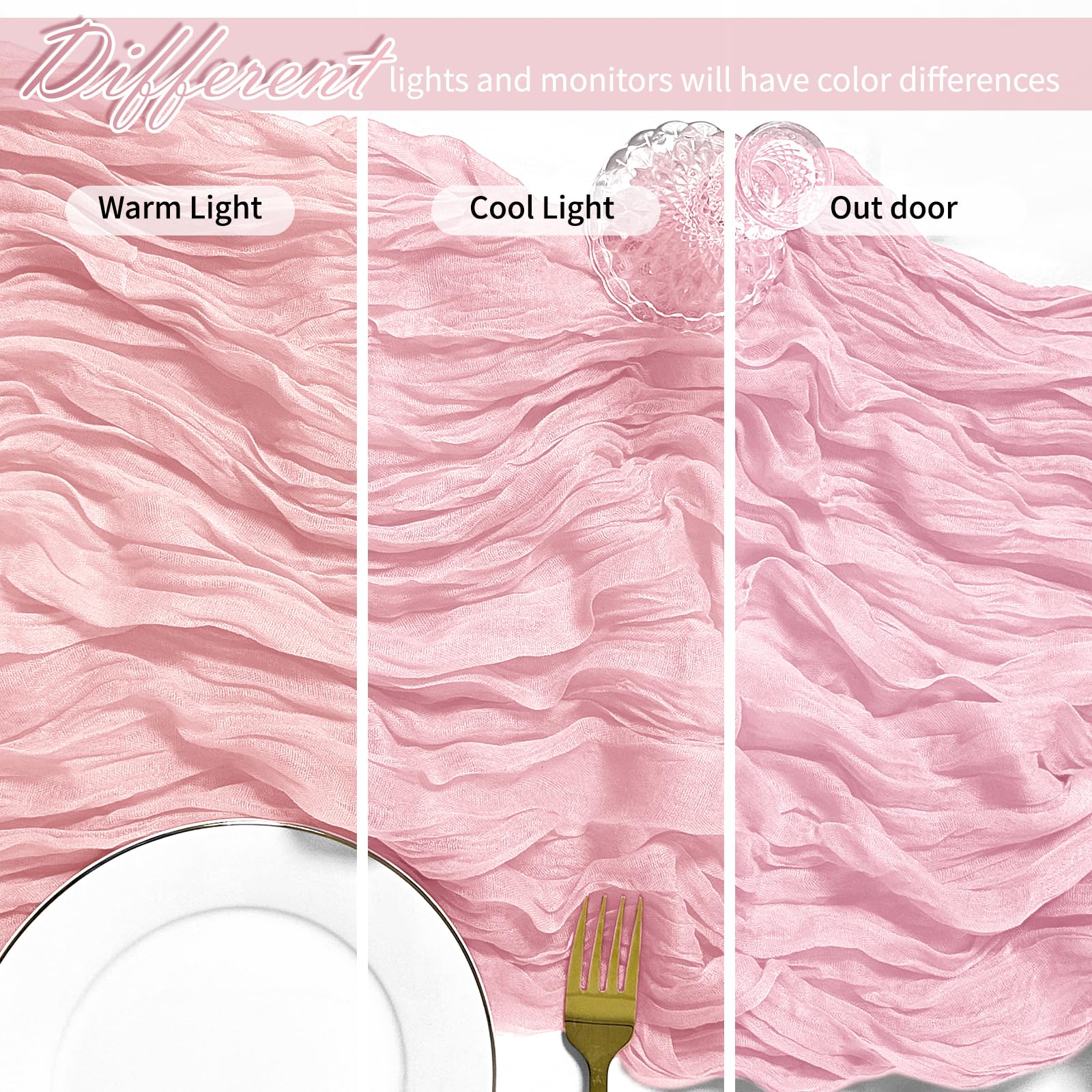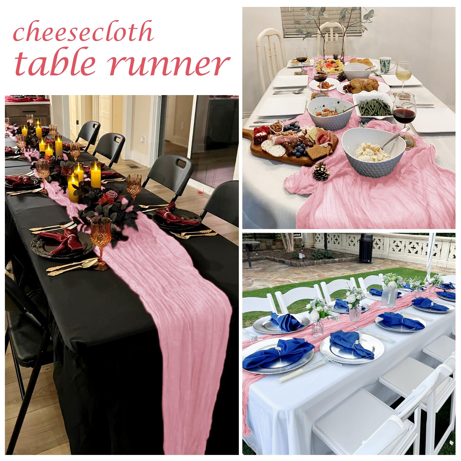 - Package Included: You will receive 12 pieces of 17 x 108 inch pink cheesecloth table runner with elegant and beautiful design, enough quantity to meet daily use and replacement needs, and size to fit most rectangular and round tables. Cheesecloth table runner will make your dining table more elegant and gorgeous
