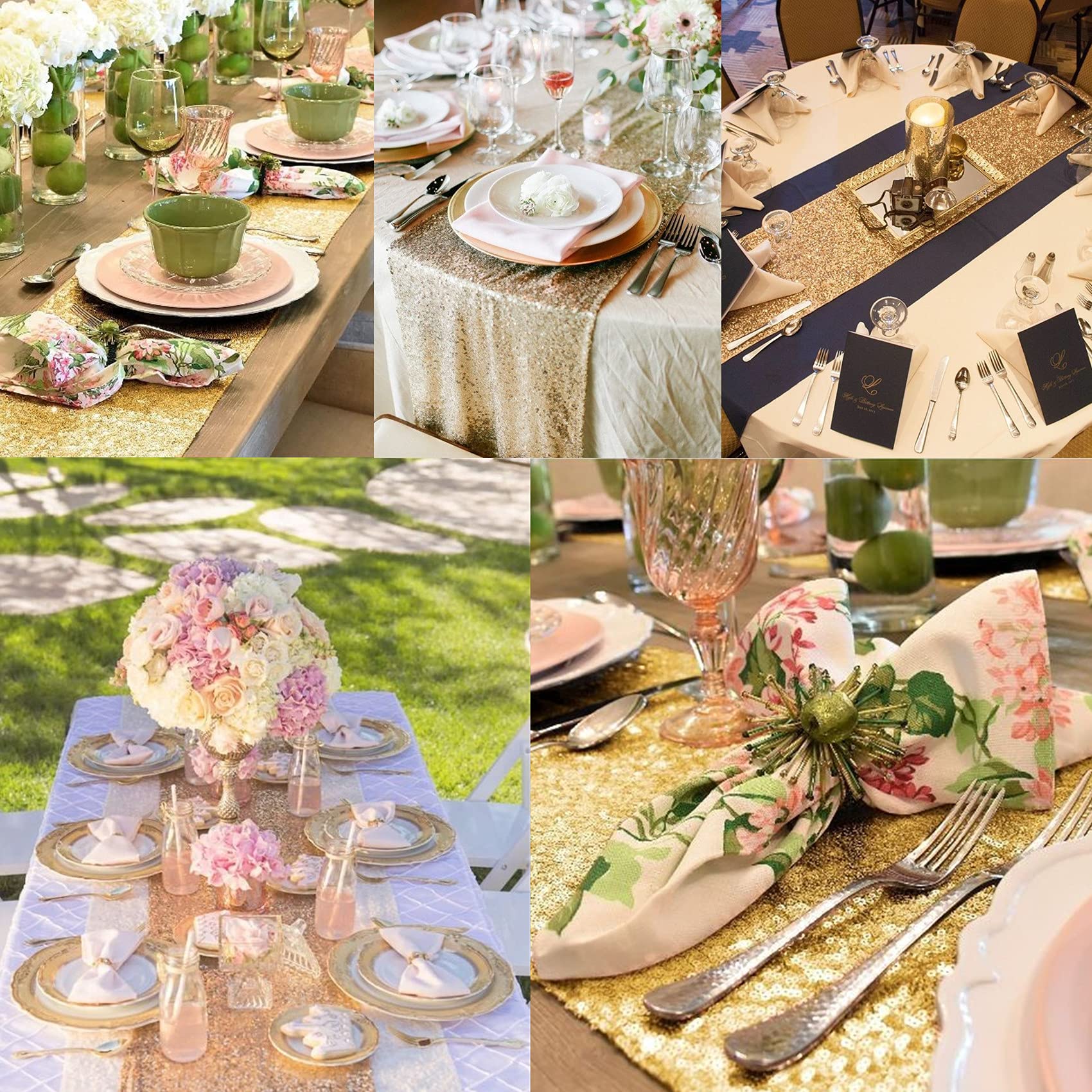 - Widely Occasion: Sequin table runner looks nice on various occasions, wedding, baby and bridal showers, birthday parties, the top of the piano, fireplace, classic candy buffets, dessert tables, and life events. These glitter table runners add charm to ordinary table covers, giving tables a perfect look and enhancing the atmosphere for your event. If you don't want to use the table runner anymore, you can DIY it, such as banner, bow tie, place mats, Christmas tree decor, backdrop.