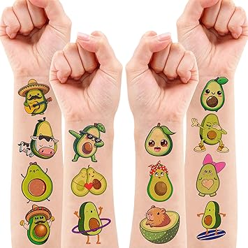 - FUN GIFT FOR VEGETABLE AVOCADO BIRTHDAY PARTY FAVORS DECORATIONS: AVOCADO TATTOOS for themed party, outdoor parties, birthday parties, school rewards and other party events. In addition, they help children recognize vegetable, fruit closer to plant nature. AVOCADO TATTOOS are also interesting and lovely gifts for your children. Complement your unique collection with a avocado tattoo!