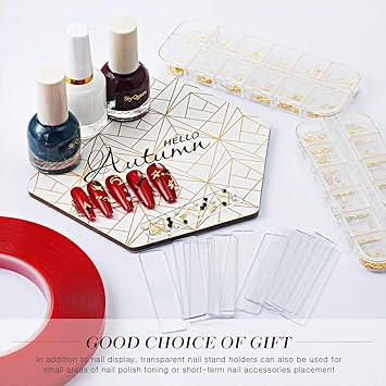 - You will receive: 100 pieces of transparent nail stand holders and 1 roll double side tape (total length is 10 meters, surface width is 1 cm), enough quantity to meet the daily use needs of nail display, durable material makes sure its longer service life